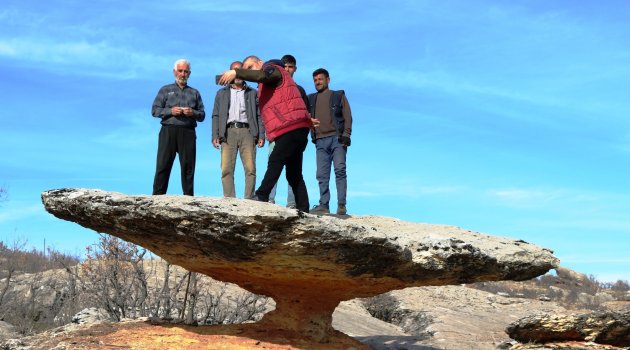 Asırlık mantar kaya görenleri hayrete düşürüyor