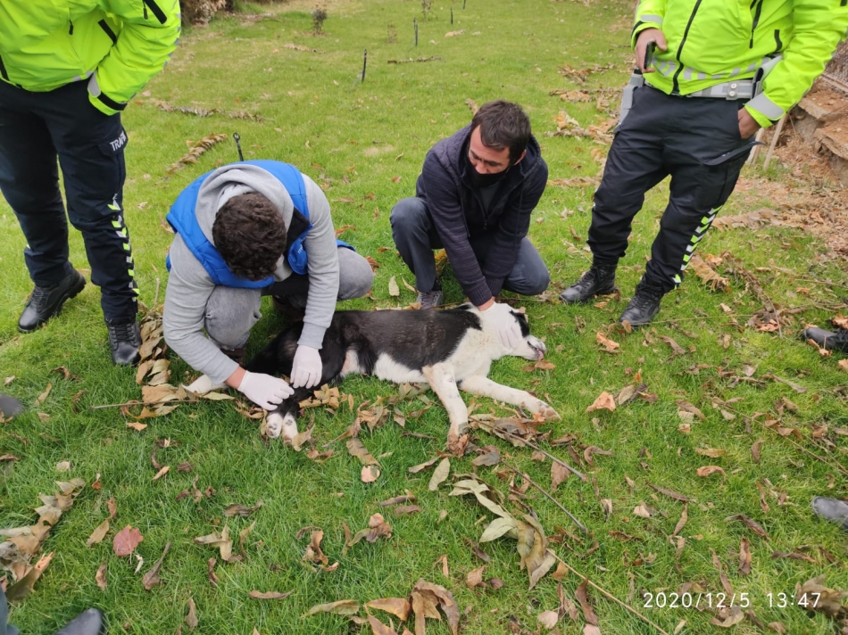 Tedavisi için çalışma başlatılan yaralı köpeğin tedavisi tamamlanıp iyileşinceye kadar Bölge trafik Denetleme Şube Müdürlüğü yerleşkesinde tutulacağı bildirildi.