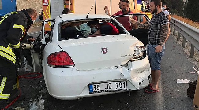 Edinilen bilgiye göre, Ali Rıza G. (52) idaresindeki 09 D 4852 plakalı bir tur operatörüne ait minibüs, Aydın-Söke kara yolu Sazlı Mahallesi’nde, sürücüsünün direksiyon hakimiyetini kaybetmesiyle refüje çarparak karşı yönden gelen Enes Ö.’nün (36) kullandığı 35 JC 701 plakalı otomobille çarpıştı.