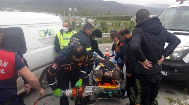 Aydınlatma direğine çarpan kamyonetin sürücüsü ağır yaralandı