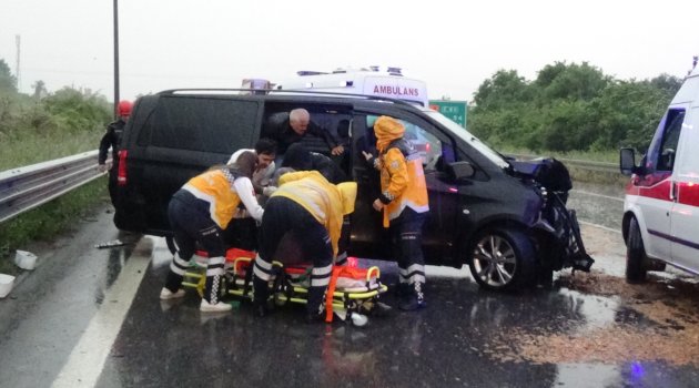 Kaza, akşam saatlerinde TEM Otoyolu Düzce kesiminde meydana geldi. İstanbul’dan Ankara istikametine gitmekte olan isimleri henüz belli olmayan 34 HC 3737 plakalı minibüs sürücüsünün bir anlık dikkatsizliği sonrası önünde ilerleyen kamyona çarptı. Çarpmanın etkisi ile dönen minibüsün içerisinde bulunan 5 kişi yaralandı.