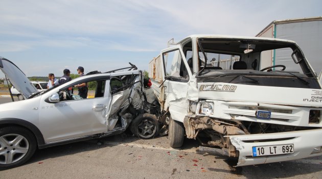 Kaza, saat 15.00 sıralarında Tuzla mevkiinde meydana geldi. Ayvalık'tan İzmir yönüne giden Sevcan Yıldırım, sürücü değişimi için 35 KH 3233 plakalı otomobilini yolun kenarına çekti. Aynı yönde giden Orçun Yıldız yönetimindeki 10 LT 692 plakalı kamyonet, sürücüsünün direksiyon kontrolünü kaybetmesiyle yol kenarında park halindeki otomobile çarptı.
