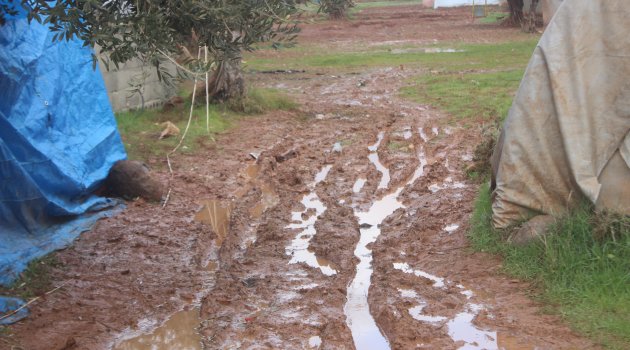 Azez'deki kamplar çamur içinde