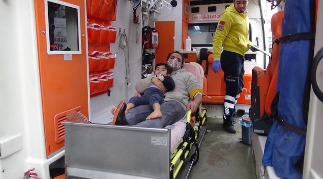 Gaziantep'te 4 kişilik Suriyeli aile sobadan sızan gazdan etkilenirken, baba oğul aynı sedyede hastaneye götürüldü.