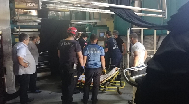 Bursa'nın İnegöl ilçesi organize sanayi bölgesinde faaliyet gösteren tekstil fabrikasında meydana gelen olayda, bacağı makinenin silindirine sıkışan kadın işçi yaralandı.