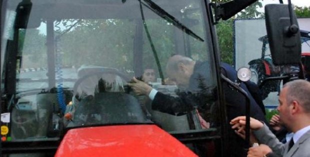 Traktör sergisini de gezen MHP lideri, bir traktöre binmeye çalıştığı sırada düşme tehlikesi geçirdi. Korumaların yardımıyla traktöre binen Bahçeli, Afyonkarahisar Milletvekili Kemalettin Yılmaz'ı yanına çağırdı. Bahçeli traktörün direksiyonuna geçerken Yılmaz yanında ayakta durarak poz verdi. Bahçeli ve beraberindekiler daha sonra festival alanına geçti.