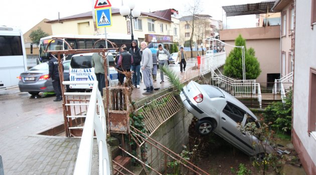 Bahçeye uçan otomobil sürücüsü yaralandı
