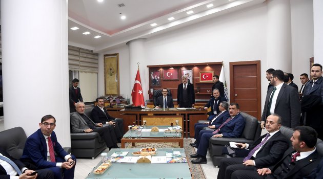 Enerji ve Tabii Kaynaklar Bakanı Fatih Dönmez beraberindeki heyet ile birlikte Büyükşehir Belediye Başkanı Hacı Uğur Polat’ı makamında ziyaret ederek Büyükşehir Belediyesinin yapmış olduğu yatırım ve çalışmaları hakkında bilgiler aldı.