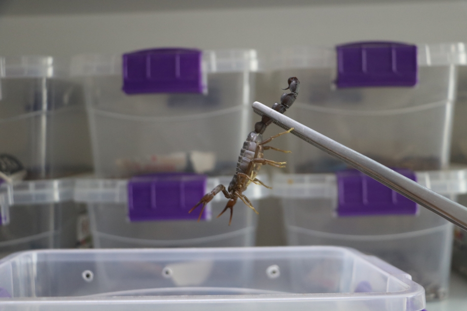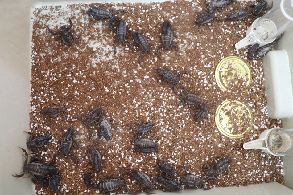 Akrep zehri üretim tesisinin biyoloğu Eren Arslan, hayvanların ayrı ayrı kaplarda koloniler halinde beslendiğini ifade ederek “Haftalık ve günlük hayvanların rutin bakımından Murat abi sorumluydu. Bende günlük olarak hayvanların sağlıyla ilgileniyorum. Bu hayvanlar hepsi ayrı ayrı kaplarda bazıları koloni halinde besleniyorlar. Günlük bakımlar yapılıyor. Suları veriliyor. 150’şer adet akreple başlamıştık. Bu hayvanları üreterek şuan elimizde 5 bin adet hayvanımız var. Daha da fazla üretip bu zehri satarak ülkemize döviz girişi yaparak katkıda bulunmak istiyoruz. Gram fiyatımız biz belirlemediğimiz için yurtdışındaki fiyatlardan bahsediyoruz biz. Ne zaman satış olursa biz de net bir fiyat verebiliriz o zaman. Burası tesis olarak geçiyor. Zaten ruhsatlandırmalar Tarım ve Orman Bakanlığından yapıldı” şeklinde konuştu.