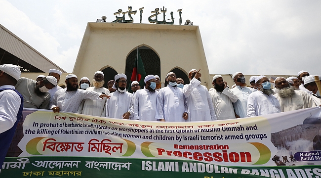 Bangladeş'in başkenti Dakka'da binlerce Müslüman, İsrail'in Gazze'ye yönelik saldırılarını protesto ederek Filistin halkına destek mesajı verdi.