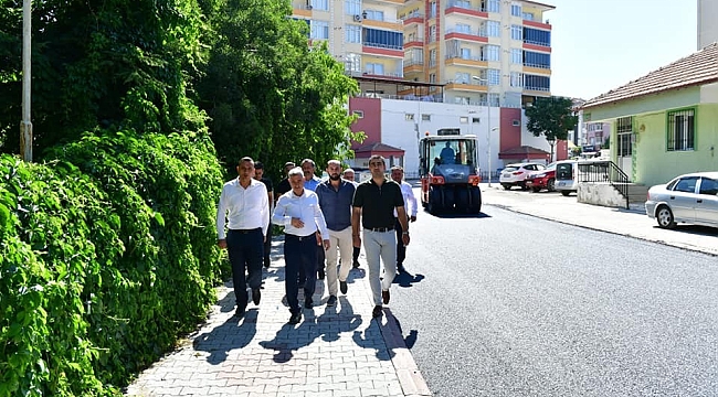 Yeşilyurt Belediyesi Fen İşleri Müdürlüğü ekipleri tarafından ilçenin dört bir tarafında sürdürülen yol açma, genişletme, alt yapı çalışmaları, sıcak asfalt ve sathi kaplama serimlerini yakından takip eden Yeşilyurt Belediye Başkanı Mehmet Çınar, Bentbaşı Mahallesinin ara sokaklarında gerçekleşen tam kaplamalı sıcak asfalt serimlerini yerinde inceledi.