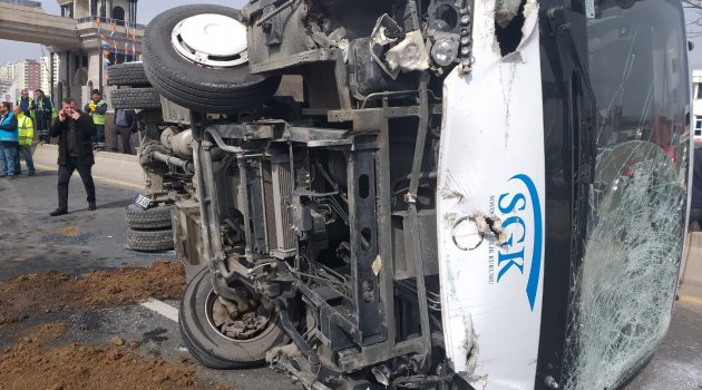 Ankara'da servis otobüsünün devrilmesi sonucu 1 kişi yaralandı.