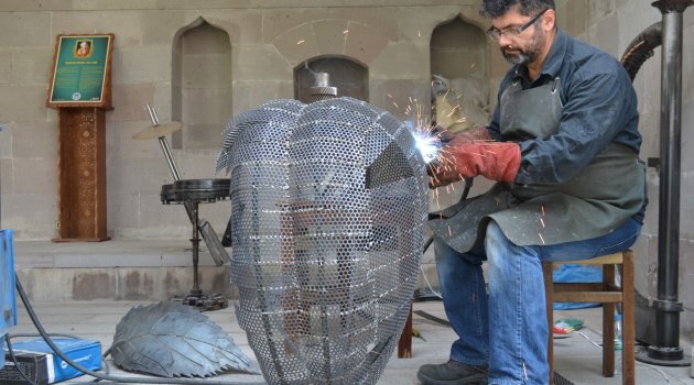 10. Uluslararası Kervansaray Buluşmaları kapsamında Malatya’ya gelen akademisyen ve sanatçılar, Silahtar Mustafa Paşa Kervansarayı’nda düzenlenen çalıştaya katıldı. Çalıştayla ilgili değerlendirmede bulunan Fırat Üniversitesi Öğretim Görevlisi Rüçhan Keçeci, “Yaklaşık 12 yıldır atık malzemelerle eserler üreten bir sanatçıyım. Yaptığım eserlerle Türkiye’deki büyük fuarlara, AVM ve organizasyonlara katılıyorum. En çok sevdiğim şey atık malzemeleri değerlendirmek. Atık malzemenin çöp olmadığını insanlara anlatmak. Gördüğünüz bu çalışmalarda da insanlara aynı şeyleri anlatmaya çalışıyorum. Doğayı korumak, atıkları değerlendirmek, bunun bir geri dönüşüm olduğunu anlatmak için bu çalışmalara başladım. Cam, yağ, metal, kağıtları lütfen sokaklara, çöplere atmayalım. Bunlar için sağ olsun belediyemiz ayrı ayrı yerler yapıyor. Buralarda geri dönüşüme sokmak hem milli bir servet, hem de doğayı korumak için eserler üretiyorum” ifadelerine yer verdi.