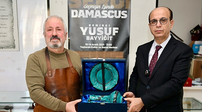 Yeşilyurt Belediye Başkanı Prof. Dr. İlhan Geçit, 53 yıldır sıcak demir işçiliğini aralıksız sürdüren ve unutulmaya yüz tutmuş ‘Damascus’ tekniğiyle yaptığı el emeği göz nuru bıçaklar ve kılıçlarla bu alanda isminden söz ettiren demirci ustası Yusuf Bayyiğit’i atölyesinde ziyaret ederek, büyük bir titizlik ve emekle hayata geçen eserleri inceledi.