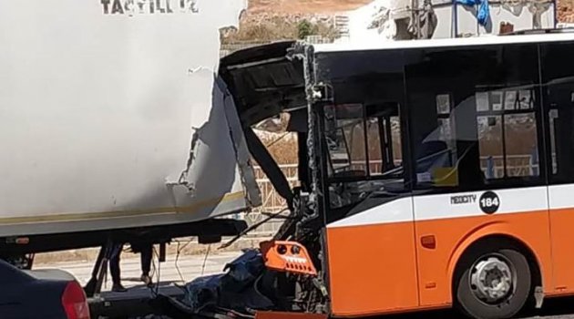 Belediye otobüsü tıra çarptı: 1 yaralı