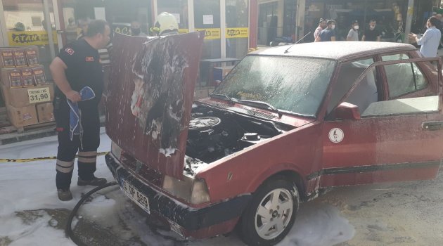 Otomobilde maddi hasar oluşurken yangının benzin hortumunun patlaması sonucu çıktığı öğrenildi.