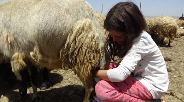 Annesine süt sağmak için yardımcı olduğunu belirten 7. sınıf öğrencisi Mizgin Karayel de "7. sınıfa gidiyorum. Burada koyun, keçi sağıyorum ve anneme yardım ediyorum. Sağdığımız sütü bayramda sütlaç, yoğurt ve peynir yapıyoruz, bir kısmını da satıyoruz. Bayram hediyesi olarak anneme yardım ediyorum” ifadelerini kullandı.