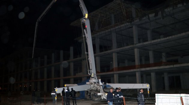 İnşaatın 3. katında havanın kararmasına rağmen devam eden beton dökümü sırasında beton kalıbı çöktü.