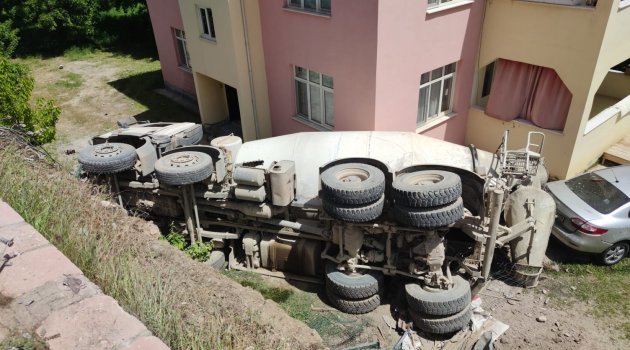 Beton mikseri 5 metre yükseklikten bahçeye uçtu eve çarptı