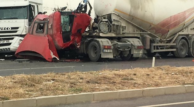 Beton mikseri ile tır çarpıştı, kaza ucuz atlatıldı