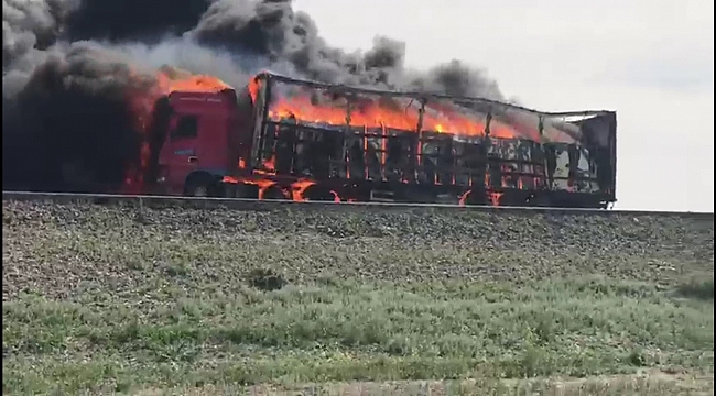 Beyaz eşya yüklü tır alev alev yandı