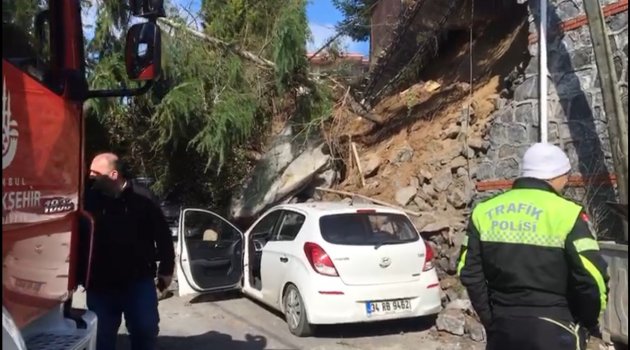 Beykoz'da duvar çöktü, iki araç altında kaldı