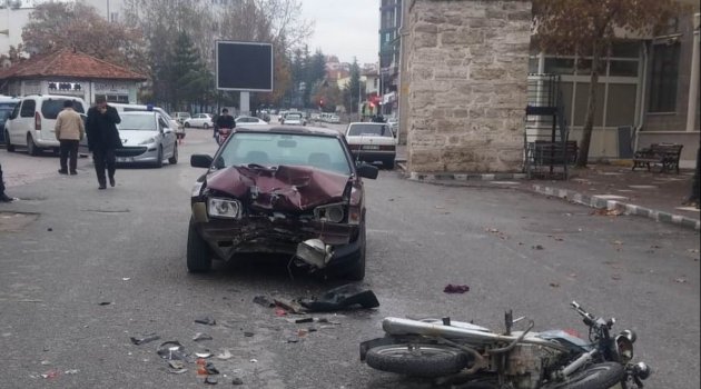 Konya’nın Beyşehir ilçesinde otomobille çarpışan motosikletin sürücüsü yaralandı.