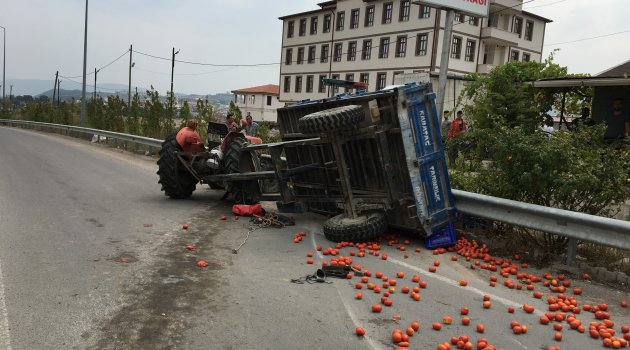 Bilecik’in Osmaneli ilçesinde kamyonun domates yüklü traktöre çapması sonucu meydana gelen trafik kazasında 3 kişi yaralanırken, domateslerin yola saçılması sonucu ulaşım bir süre aksadı.