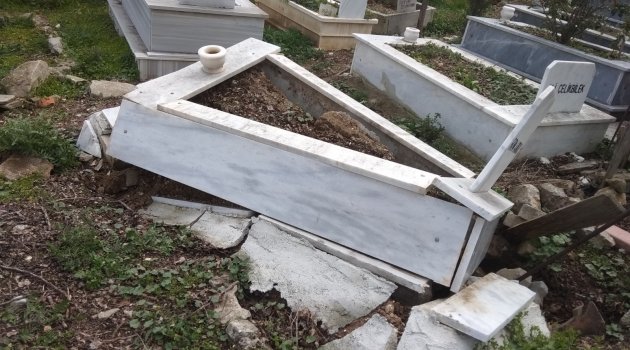 Bilecik'te yaşanan toprak kayması sonucu Bilecik Belediyesi Şehir Mezarlığı'nda bulunan bazı mezarlara zarar verdi.