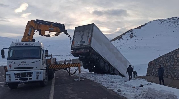 Bingöl’ün Karlıova ilçesinde, tır yoldan çıkıp şarampole indi, kazada sürücü yaralandı.