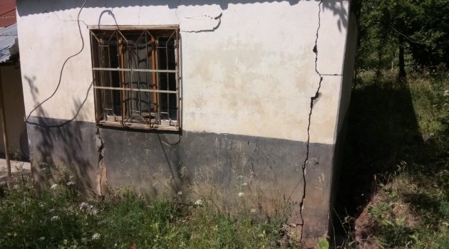 Bingöl'de bir mezrada meydana gelen heyelan nedeniyle 2 ev boşaltıldı. Heyelanda ev ve bahçelerde yarıklar oluştu.