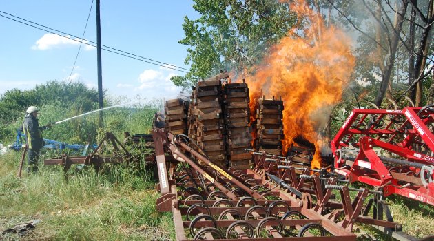 Olay, Malkara girişinde bulunan Pullukçu Sanayi Sitesi'nde meydana geldi. Edinilen bilgiye göre, ilçe merkezinden bir çiftçiye ait yaklaşık bin adet istiflenmiş tahta sebze sandığı, bilinmeyen bir nedenle alev alev yandı.