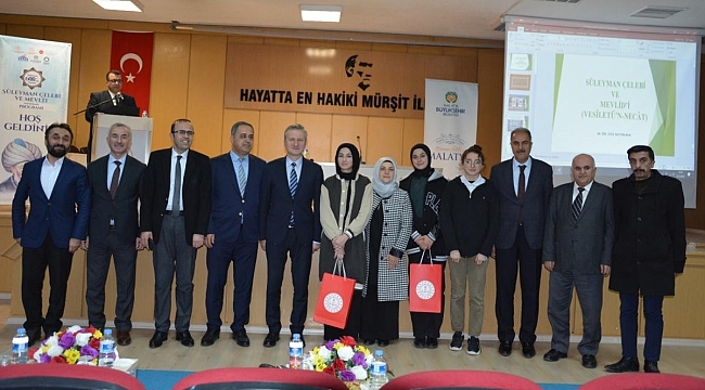 Açılış konuşmasını yapan Çetin Şişman, İl Milli Eğitim Müdürlüğünün liselerde Süleyman Çelebi ile ilgili kompozisyon yarışması düzenlediğini belirterek, "Daha önceki yıllarda Yunus Emre, Ahi Evran gibi şahsiyetlerimizin de Birleşmiş Milletler Eğitim, Bilim ve Kültür Örgütü (UNESCO) anma törenleri düzenlendi. Bu yıl da Cumhurbaşkanlığı himayelerinde Kültür ve Turizm Bakanlığı, Mili Eğitim Bakanlığı koordinasyonunda Süleyman Çelebi'nin 600. yıl dönümünde böyle bir program düzenledik" dedi. Konferansa konuşmacı olarak katılan İlahiyat Fakültesi Öğretim Üyesi Tacetdin Bıyık da, Mevlit Yazarı Süleyman Çelebi hakkında bilgiler aktardı. Mevlidin Türk kültüründeki önemine değinen Bıyık, "Mevlitlere baktığımız zaman özünde şu vardır. Peygamberimize duyulan aşkın, sevginin ifadesidir. Dünya üzerinde bütün milletler içerisinde Hz. Peygamber'e mevlit yazan veya en çok mevlit yazılan dil Türkçedir. 200'ün üzerinde Türkçe mevlit yazılmıştır. Arapça mevlitlere baktığımız zaman bunun 1/5'i civarındadır. Mevlit, doğum yeri, doğum zamanı gibi anlamlara gelir fakat bizim kültürümüzde ise özellikle Peygamber efendimizin doğumunu konu edinen eserler ve bu münasebetle yapılan programları kast etmek için mevlit tabirini kullanmaktayız" ifadelerini kullandı.