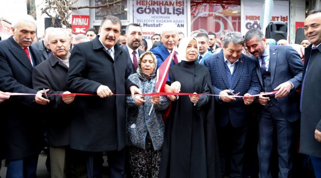 Yapılan konuşmaların ardından Cumhur İttifakı Hekimhan Seçim Bürosu’nun açılışı yoğun katılımla gerçekleştirildi. Açılış sonrası, Battalgazi Belediye Başkanı ve AK Parti Malatya Büyükşehir Belediye Başkan Adayı Selahattin Gürkan, esnaf ziyareti ve son olarak AK Parti İlçe Başkanlığı’nı ziyaret etti. Başkan Gürkan, hem esnafların, hem de partililerin sorunlarını dinledi.