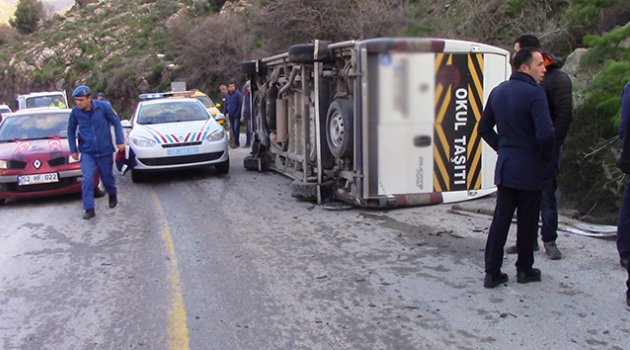 Bodrum’da yoldaki buzlanma sebebiyle içerisinde 12 öğrencinin olduğu servis devrildi.