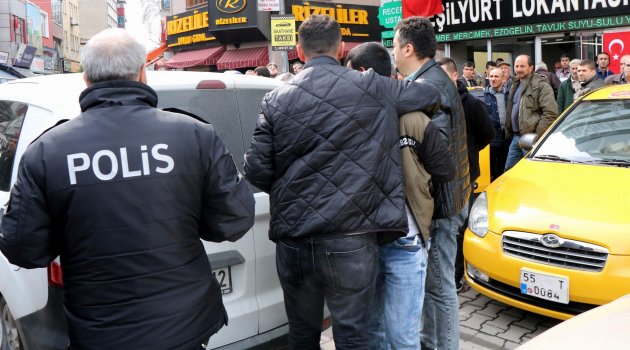 Samsun'da çıkan kavga sırasında boğazına bıçak dayanan şahıs, polisin havaya ateş açmasıyla son anda kurtuldu.