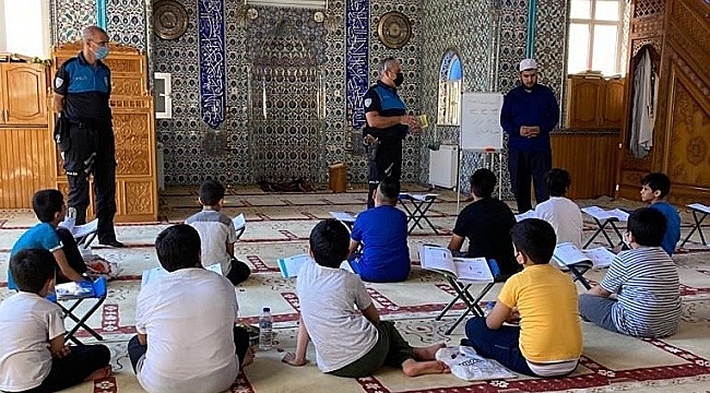 Polis ekipleri kuran Kurslarında öğrenim gören çocukları sıcak havalarda serinlemek amacıyla tercih edilen; baraj, gölet, akarsu ve ya sulama kanalı gibi tehlikeli su kaynaklarında yaşanabilecek olumsuzluklara karşı uyararak bilgilendirdi.