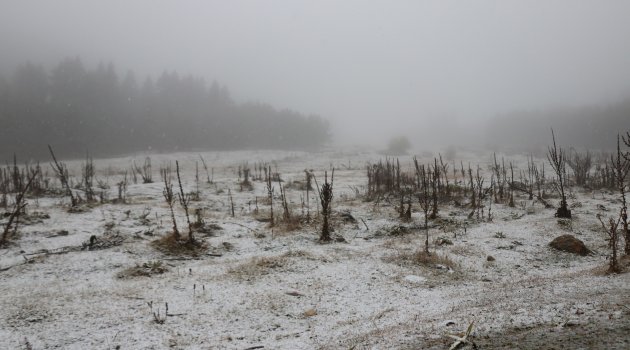 Bolu’nun yüksek kesimlerinde başlayan kar yağışıyla yeşil alanlar beyaza büründü.
