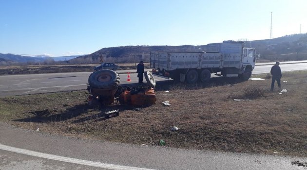 Edinilen bilgiye göre, saat 12.20'de Osmanköy mevkisinde Özler G.(55) idaresindeki 45 TV 083 plakalı kamyon, Boyabat istikametine doğru kavşaktan dönüş yapan Mehmet Sözcü'nün kullandığı traktörle çarpıştı.