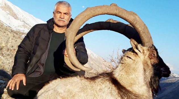 Amerikalı Avcı Patrick Barley Hulbert Çelikhan Akdağ Devlet Avlağında boynuz uzunluğu 127 santim olan 11 yaşındaki tekeyi avladı.