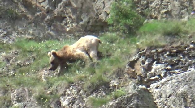 İspir’de Çoruh Vadisinde dağdan inen ayı, Çoruh'tan su içtikten sonra kayalıklara doğru tırmandı. Cep telefonu ile görüntülenen ayının rahat tavırları dikkat çekti.