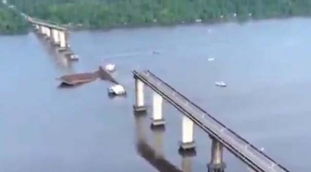 Brezilya’nın Para eyaletinde Moju Nehri üzerindeki köprü bir feribotun ayağına çarpması sonucu yıkıldı.