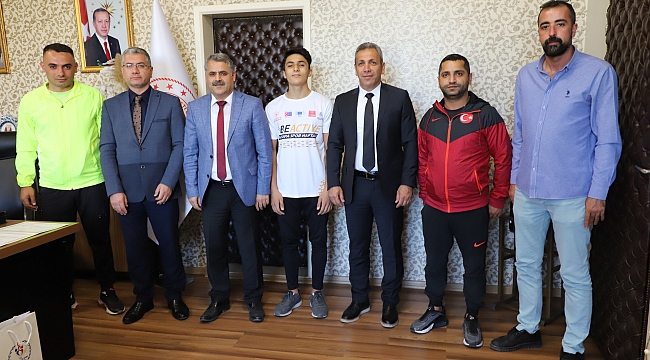 İstanbul'da 29 Eylül-3 Ekim 2021 tarihleri arasında düzenlenen Türkiye Muammer Gökmen Vücut Geliştirme-Fitness Şampiyonasında üçüncü olan Malatyalı sporcu Çağrı Adıyaman'ı makamında misafir eden Malatya Gençlik ve Spor Müdürü Ebubekir Kayhan, sporcuyu ve antrenörünü kutladı.