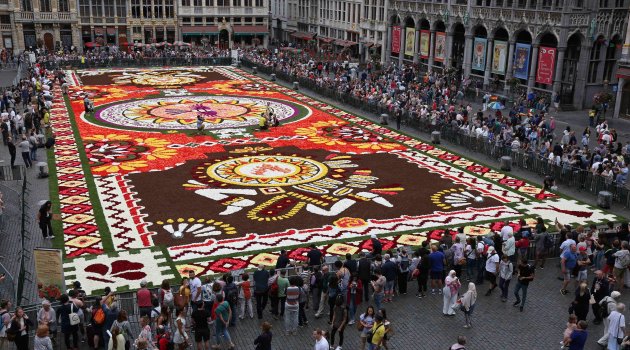 Her iki yılda bir Belçika meydanı bölgeyi görkemli bir halıya çeviren parlak çiçeklerle süsleniyor. Bu yıl Brüksel çiçek halısı, ilk defa Latin Amerika kültürü desenleriyle hazırlandı. Halının, Meksika’da halılarıyla ünlü Guanajuato şehrinden esinlenerek yapıldığı ifade edildi. Organizatörler, 500 binden fazla çiçeğin kullanıldığını ifade ederek bu görsel şölenin sadece 16-19 Ağustos arasında sergileneceğini bildirdi. Halıyı tasarlayan Guanajuatolu Ana Rosa Aguilar Aguado, halının bin 800 metrekare alanı kapladığı belirtti. Guanajuato eyaletinin geleneksel sembolleriyle halıyı hazırladığını söyleyen Aguado, memleketinin zengin geleneğini ziyaretçilerin beğenilerine sunduğunu ifade etti.