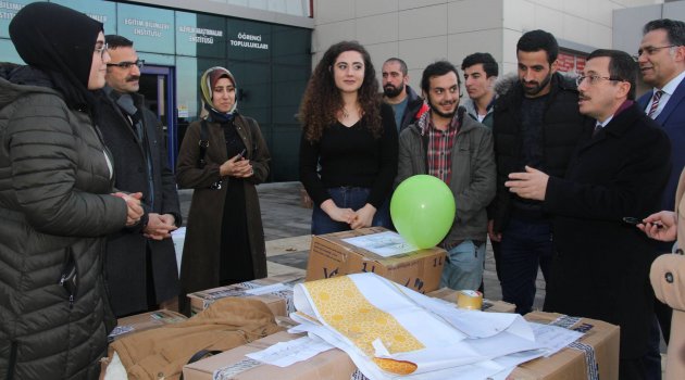 Rektör Ahmet Kızılay, proje kapsamında yardım götüren öğrencilere teşekkür ederek, “Şimdi gittiğiniz yerlere yolunuz uzak ama bu enerjiniz, bu güzel takdire şayan duygularınız bütün bu uzak yolları size kolaylaştıracak, yakın edecek. Çocukların mutluluğu bu çektiğiniz uzun yol yorgunluğunu hemen unutturacak size. Bu güzel organizasyon için topluluk başkanına, başkan yardımcılarına, bu proje içinde yer alan tüm ekibinize, size bu desteği veren küçük kahramanlara ve onların ailelerine teşekkür ediyorum.” ifadelerine yer verdi.