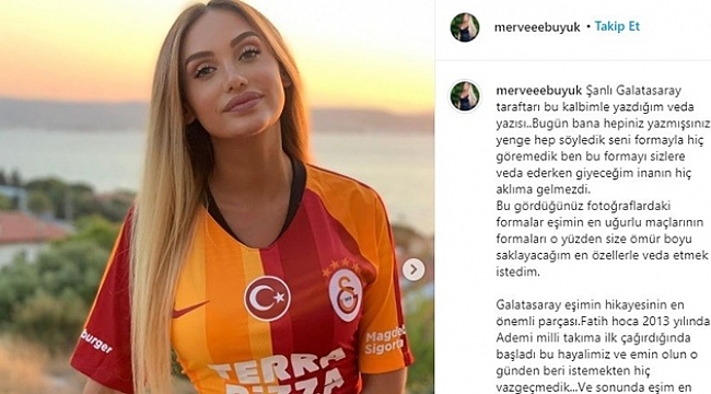 Öte yandan Merve Büyük'ün sosyal medya hesabından paylaştığı Galatasaray formalı fotoğrafında yaptığı açıklamaysa dikkat çekti. Büyük söz konusu paylaşımında, "Bu go¨rdu¨gˆu¨nu¨z fotogˆraflardaki formalar es¸imin en ugˆurlu mac¸larının formaları o yu¨zden size o¨mu¨r boyu saklayacagˆım en o¨zellerle veda etmek istedim" ifadelerine yer verdi.