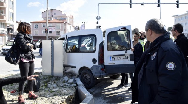 Burdur'da göreve giden trafik polisleri, kırmızı ışık ihlali yapan araçla çarpıştı.