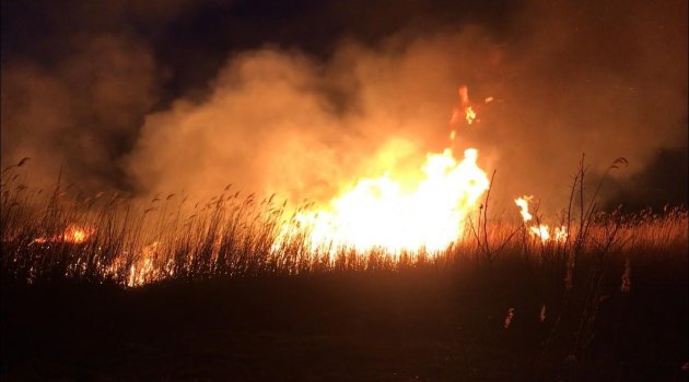 Yangının büyüklüğü şehir merkezine 8 kilometre uzaklıktaki karşı kıyıdan görüldü. Gecenin karanlığını aydınlatan alevlere itfaiye ekipleri müdahale ediyor. Ekipler, yangını kontrol altına almaya çalışıyor.