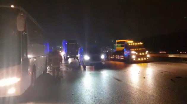Alınan bilgiye göre, akşam saatlerinde Bursa-İzmir otobanı Hal Kavşağı’nda sağanak yağış sonrası yerlerin kayganlaşmasıyla 7 aracın karıştığı kaza meydana geldi. Kazada 1 ağır 2 kişi yaralandı. Durumu ağır olan yaralı Uludağ Üniversite Tıp Fakültesine Hastanesine kaldırıldı. Kaza sebebiyle kapanan yol, araçların çekici yardımıyla kaldırılması sonucu tekrardan ulaşıma açıldı. Polis ekipleri kazayla ilgili tahkikat başlattı.