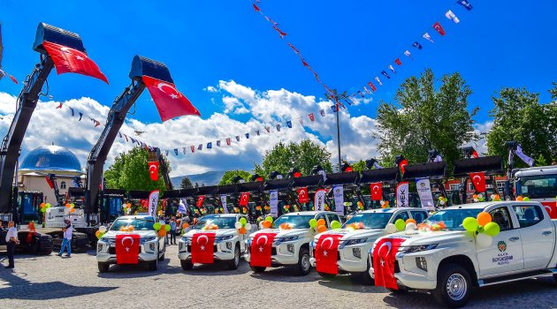 Malatya Büyükşehir Belediyesi tarafından satın alınan 106 işmakinesinden 47'si törenle teslim edildi.